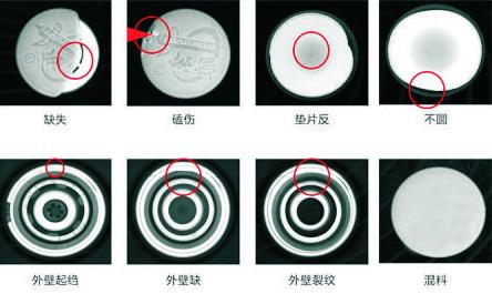 本系統(tǒng)通過采集高清的瓶蓋圖像,利用圖像分析處理技術(shù),依據(jù)各類缺陷自身顏色、紋理、幾何特性等,可檢測出瓶蓋是否存在瓶蓋高、 瓶口缺陷、液位高低等缺陷。