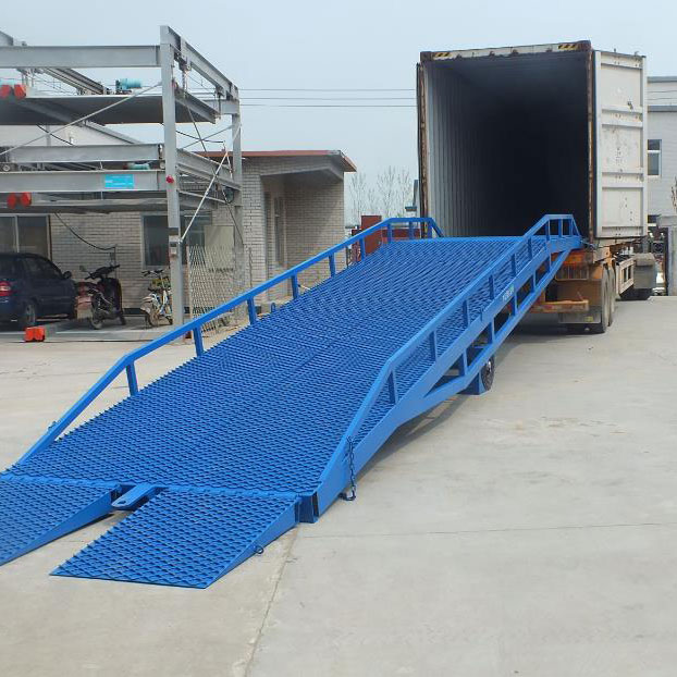 移動式液壓登車橋:是實現貨物快速裝卸的專用輔助設備,它的高度調節功能使貨車與地面之間架起一座橋梁